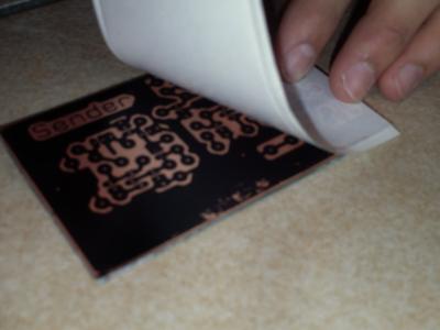 Ab 180°C schmilzt der Toner vom Laserdrucker und druckt sich auf die Platine ab.