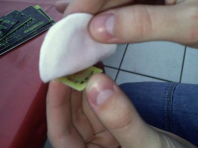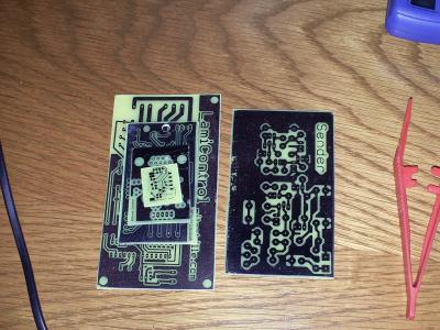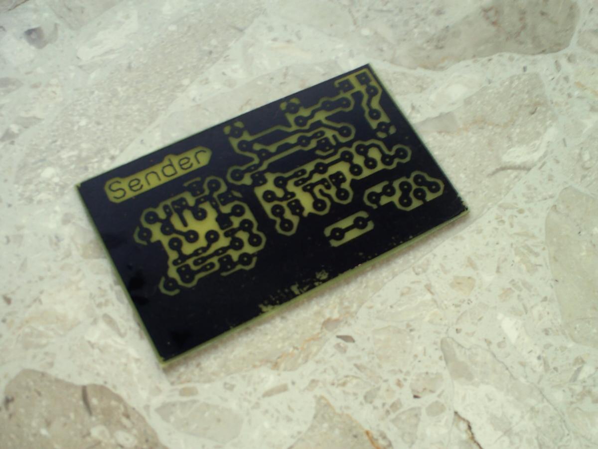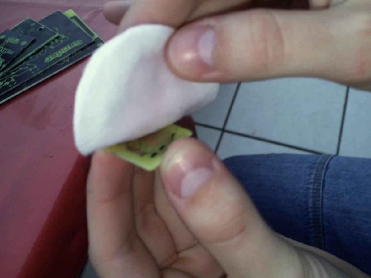 - Toner auf der Platine mit etwas Aceton entfernen