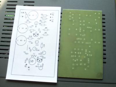 - Platinenlayout spiegelverkehrt auf ein beschichtetes Blatt drucken (Wichtig, Laserdrucker mit viel Tonerauftrag und dabei beschichtetes Papier aus einem Reichelt oder auch Conrad Katalog, etc. verwenden)