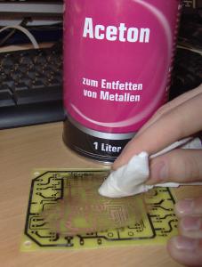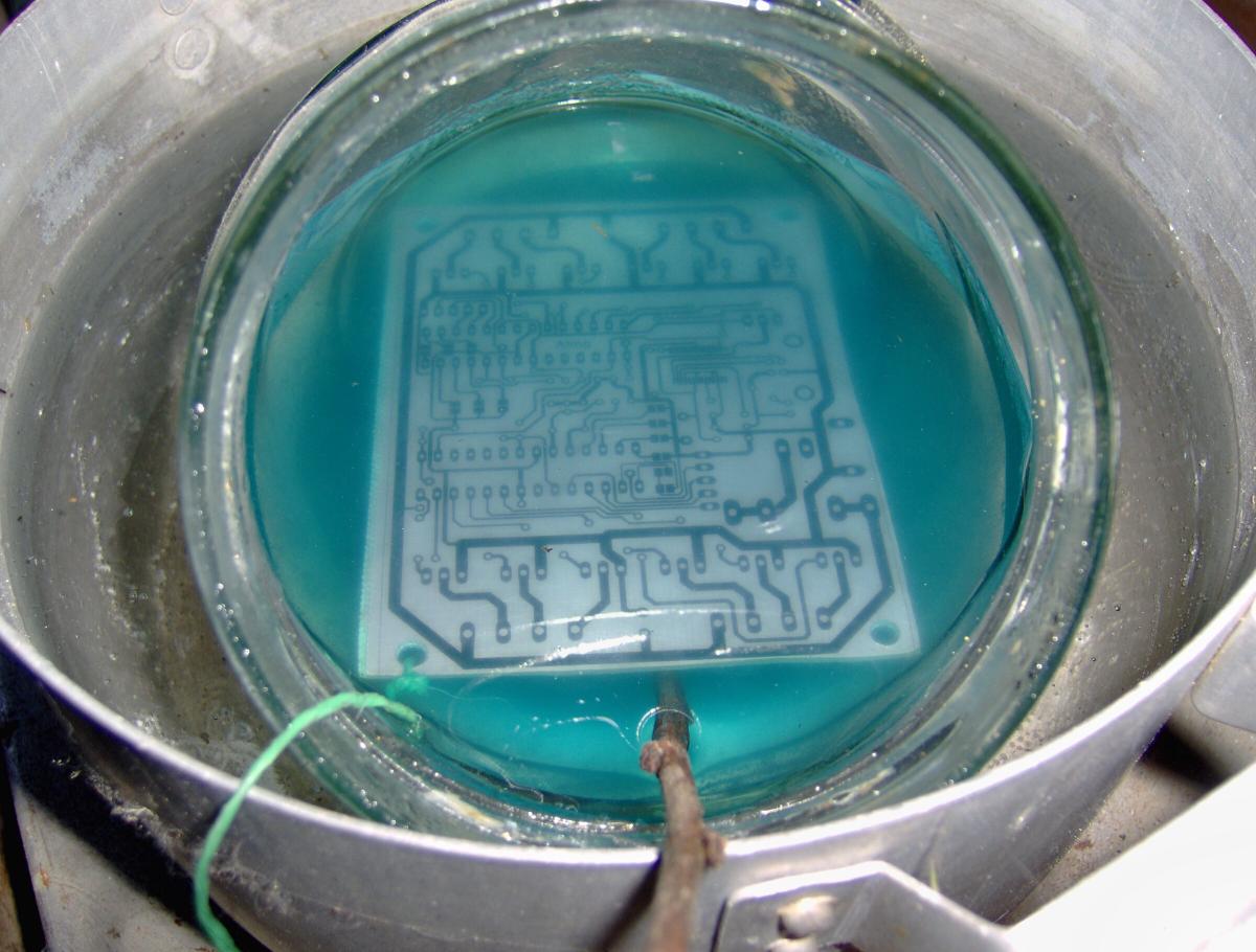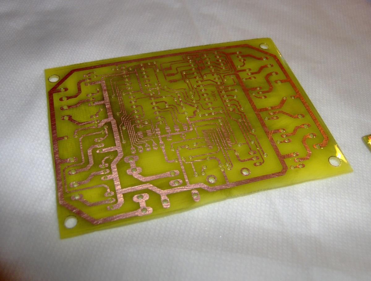 Dann gings ans Ätzen. Mithilfe des Tonertransferverfahrens ging das auch recht gut.