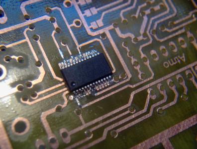 Da der USB-Seriell Wandler ein SMD Bauteil ist, war es sehr wichtig, die Kontaktflächen sauber zu Ätzen.