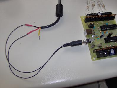 Noch mit Kabeln verbunden und an der Platine angeschlossen.