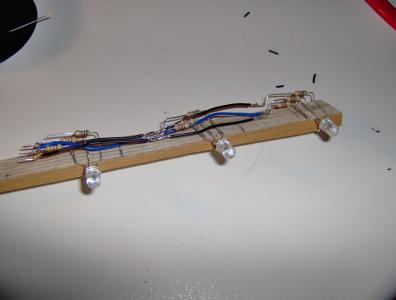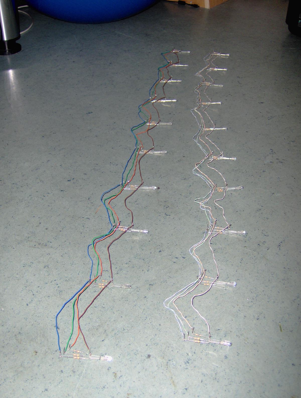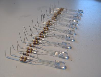 Dann der ödeste Arbeitsteil: Das Verbinden der LED’s mit Widerständen.