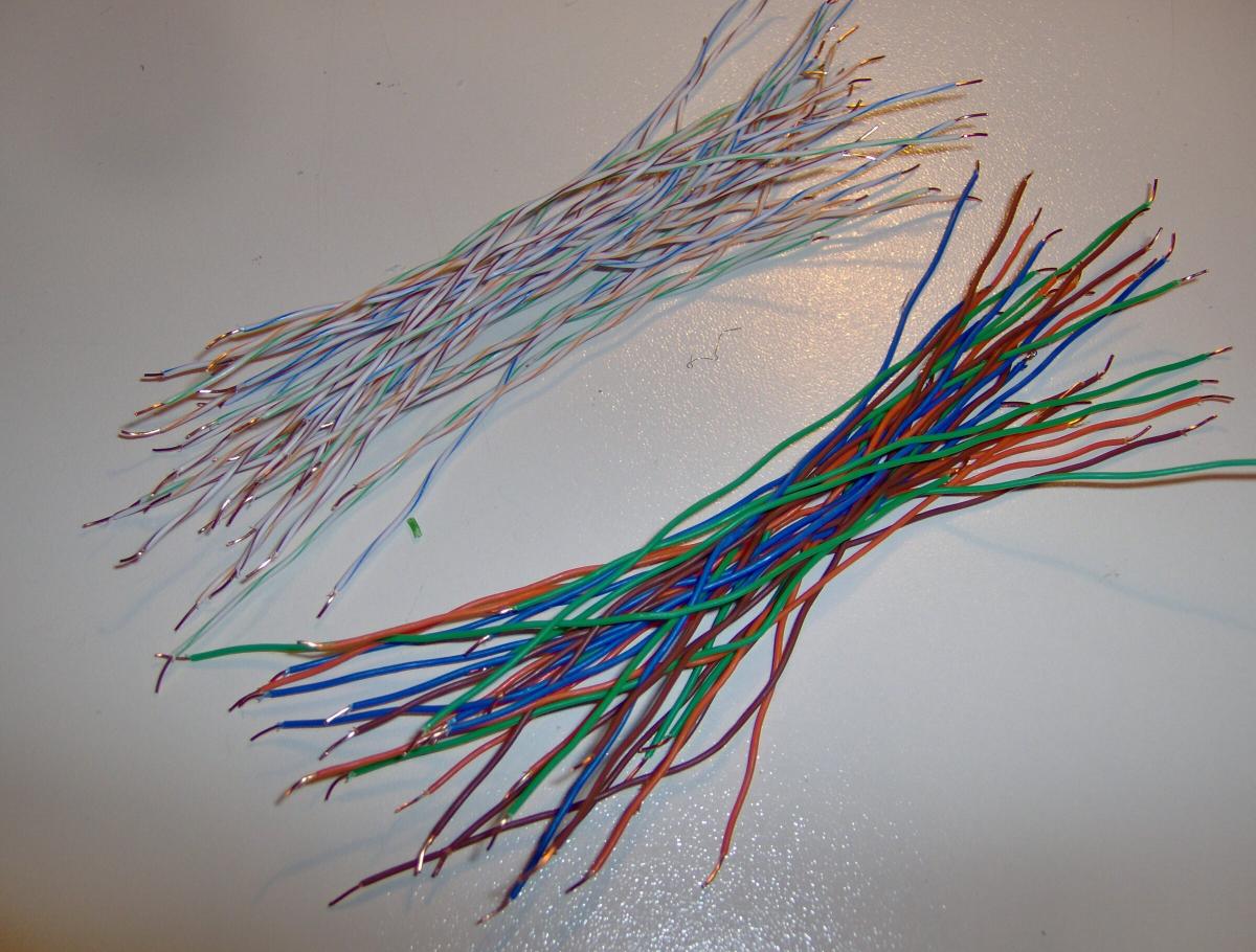 Hierführ kann ich die Adern eines Lankabels empfehlen. Es enthält insgesamt 8 farblich unterschiedliche Adern.