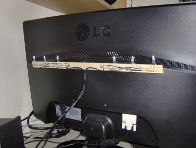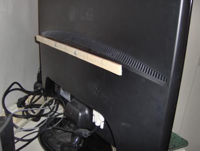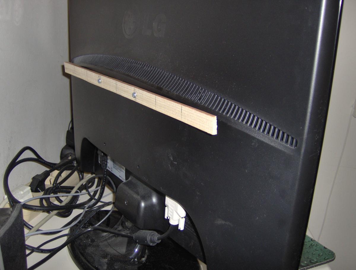 Für die selbstklebenden Streifen war eine neue Halterung hinter dem Monitor nötig.