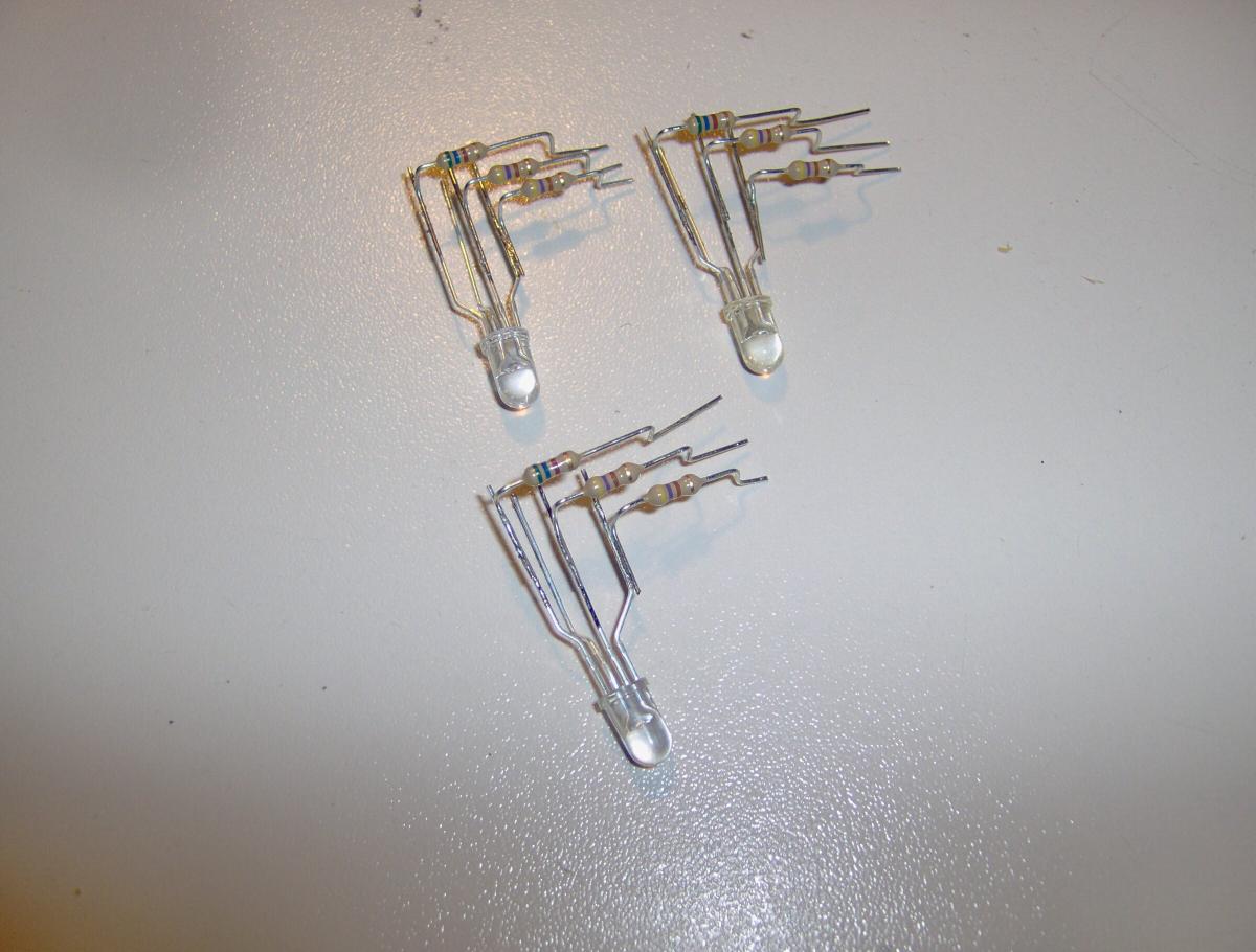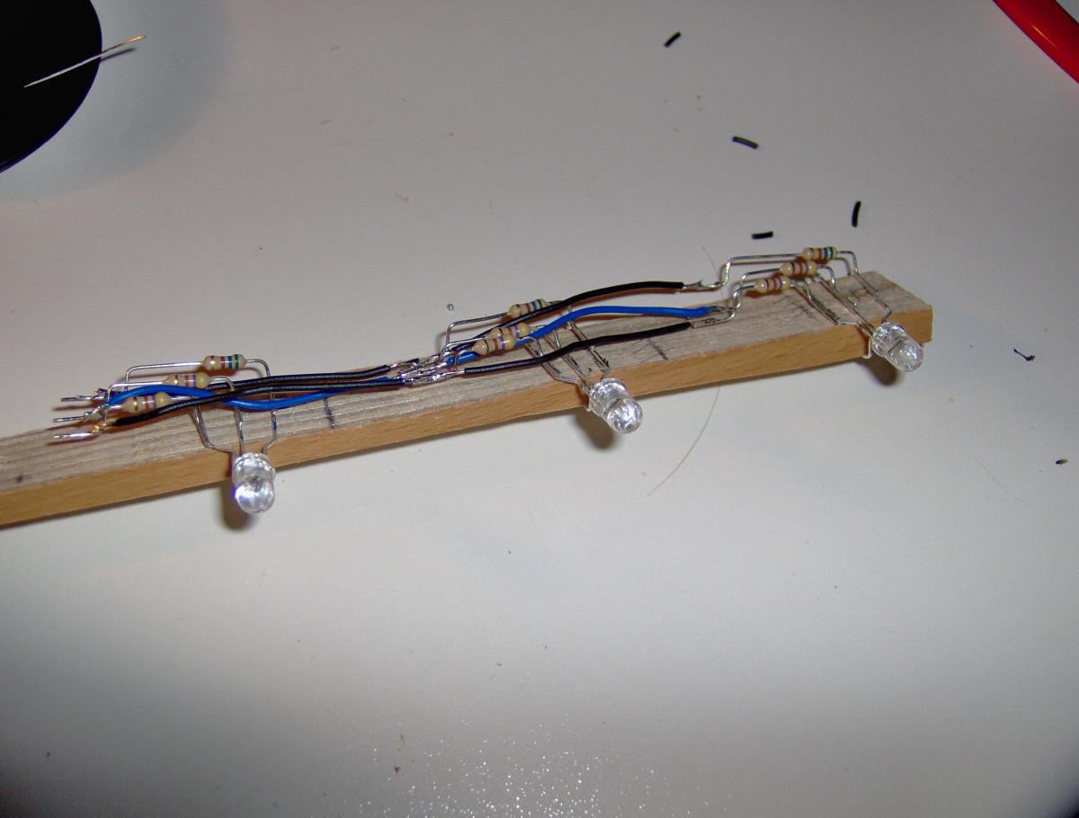 Also wieder einige LED’s mit Widerständen versehen und zurecht gebogen.