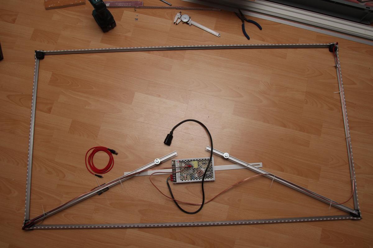 Mit dem Kauf eines deutlich größeren Betrachtungsgerätes war es wieder einmal an der Zeit das Ambilight neu zu bauen. Die Hauptkosten liegen in den LED-Streifen und dem Netzteil. Bei beidem ist der Neukauf meist einfacher und gleichzeitig die Möglichkeit dem Stand der Technik zu folgen.
