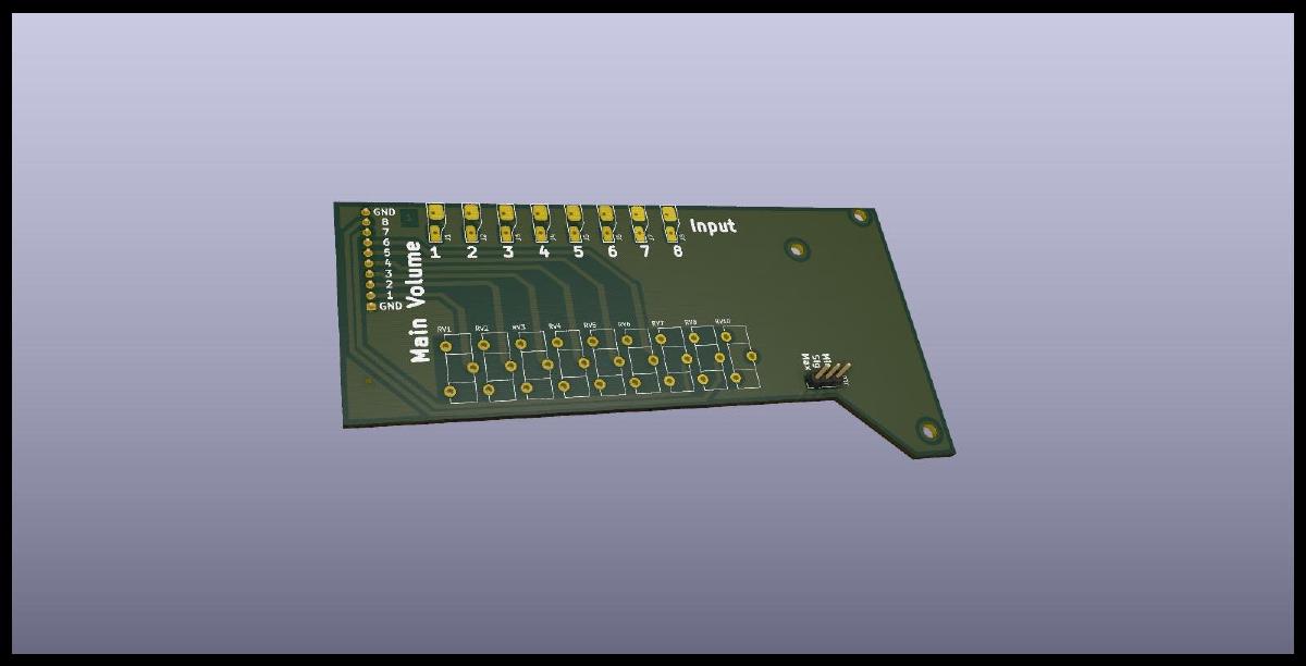 Zur Abwechselung mal etwas, das so garnicht funktioniert hat. Um die Konfigurierbarkeit hoch zu halten habe ich zu Beginn die drei Schaltungen Inputbuffer, Summierer und Outputbuffer auf kleine Steckplatinen mit PCI-Express 1x Edgeconnector umgesetzt. Der Kontakt war dabei jedoch nicht ausreichend, sodass bei kleinen Bewegungen knacken und Rauschen zu hören war. Ein paar der Opamps sind dabei glaube ich sogar gestorben. Also war dieser Ansatz raus.