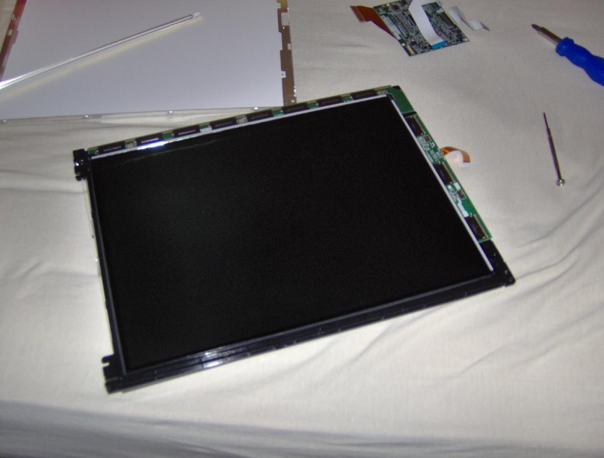 Hier die ausgebauten Teile. Hintergrundbeleuchtung wird später nicht mehr gebraucht.