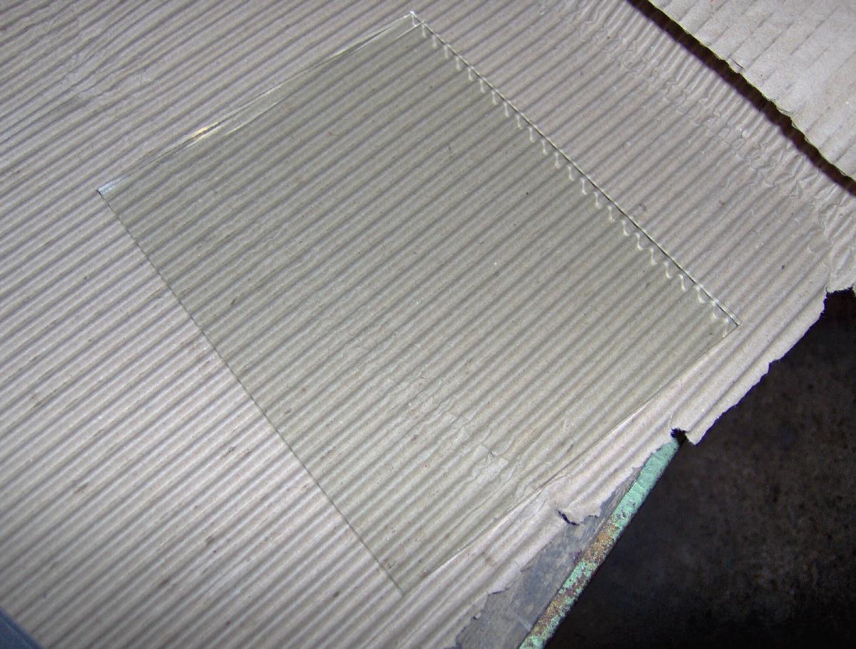 Hier das Borofloatglas. Es ist von einer Seite mit Metalldampf beschichtet,