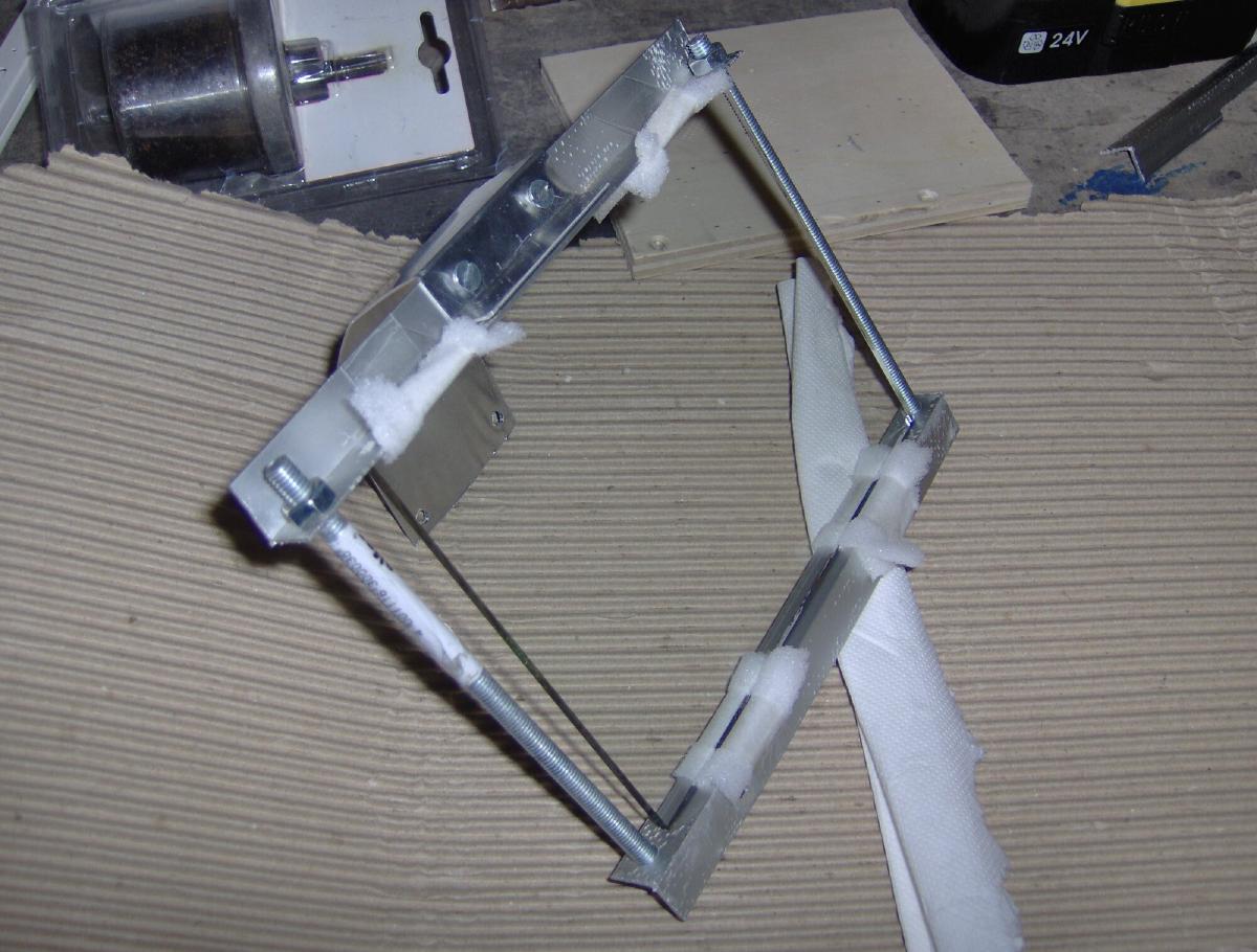 Ich habe beschlossen, dieses mithilfe von zwei Gewindestangen zwischen zwei Aluwinkeln einzuklemmen.