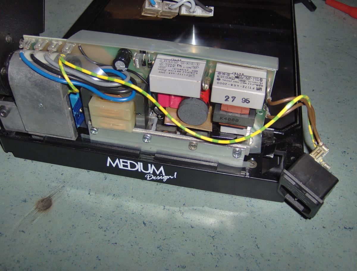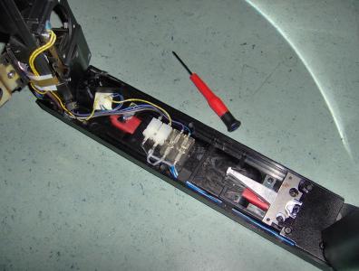 Der Arm des OHP´s. Die Kabel werden abgesteckt und die Verbindungen gut gemerkt.