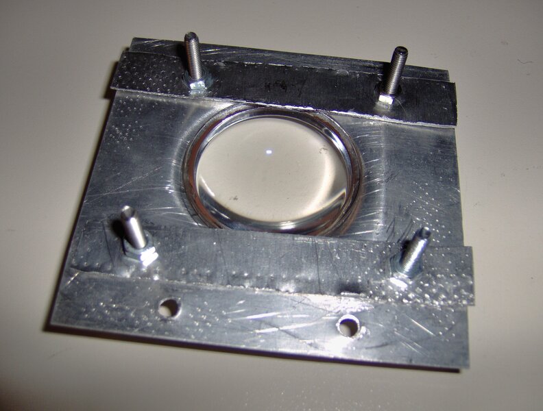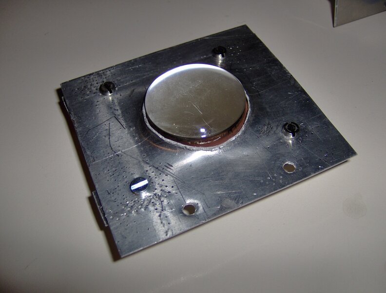 Zwischen die beiden Bleche kam der Reflektor (Durchmesser 3,2cm).