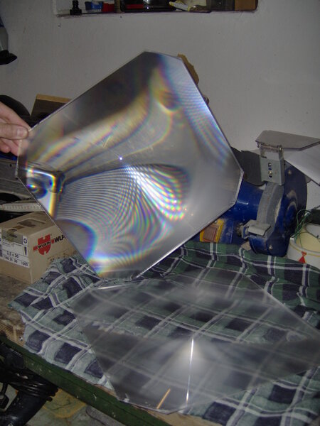 So sieht der fertige Rahmen mit Fresnelhälften aus