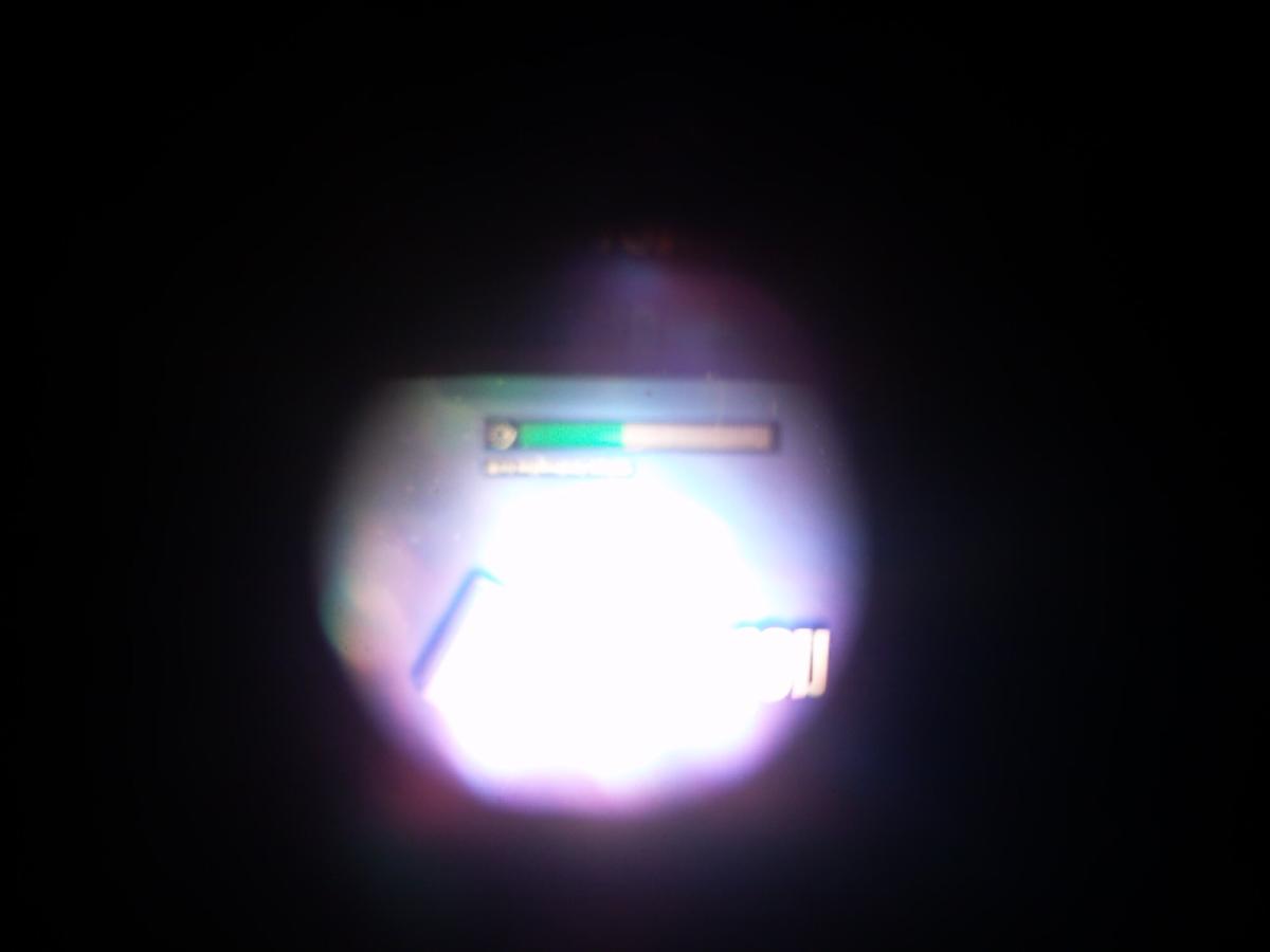 Also Beamer wieder zusammengeschraubt, eine Taschenlampe in dem Lampenschacht gehalten und durch das objektiv in dem Beamer geguckt.
