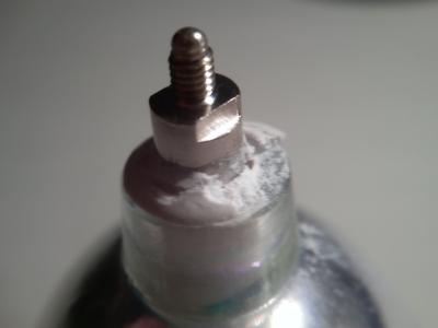 Damit der Brenner in den Reflektor eingebaut werden kann, mußte der Draht an der Seite abgeknipst ..