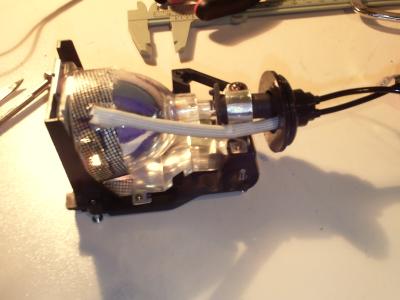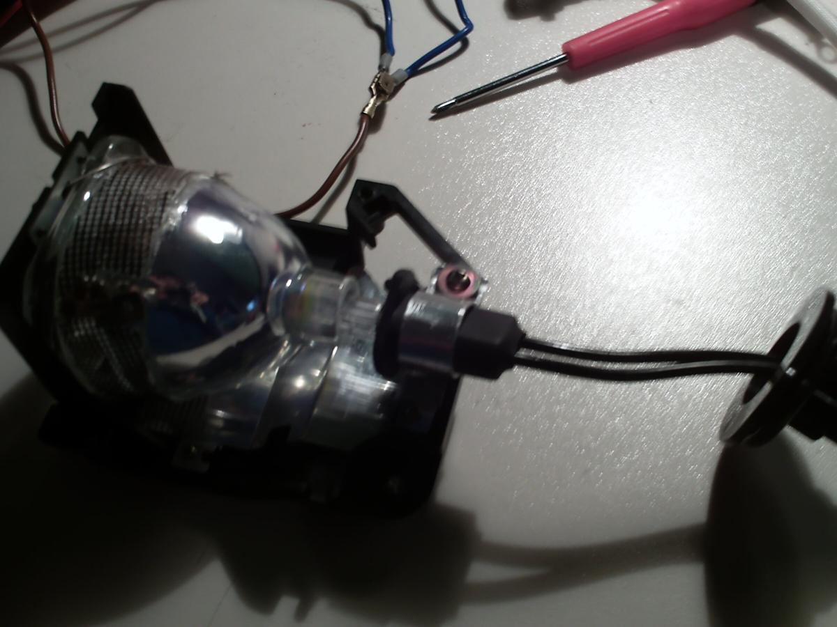 Dabei wird ein Handelsüblicher Beamer, meist mit defekter Lampe (neukosten über 100€) oder einem defekten EVG (Elektronisches Vorschaltgerät), auf ein Kostengünstigeres Leuchtmittel umgerüstet.