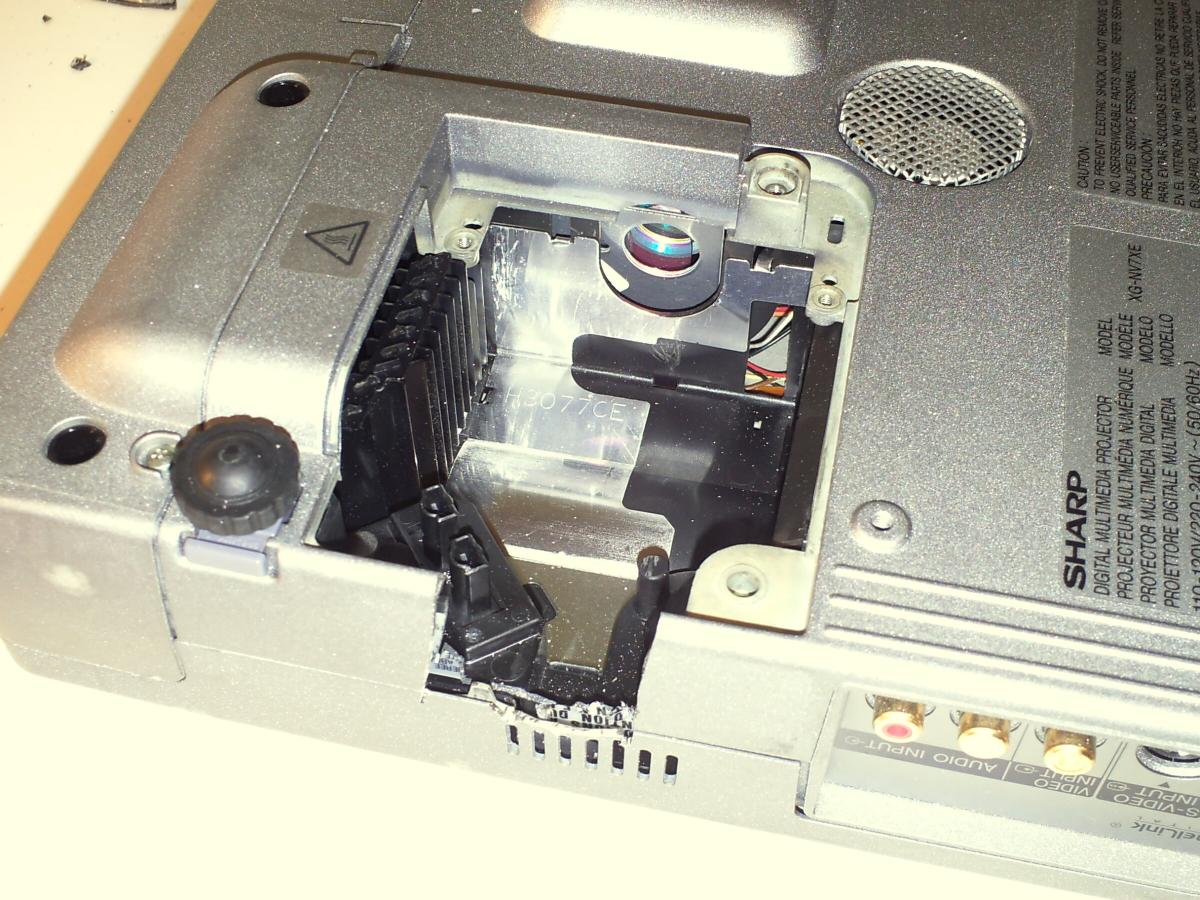 Als Beamer ersteigerte ich einen Sharp Notevision GX-NV7XE mit defektem Leuchtmittel für sagenhafte 30€ incl. Versand.