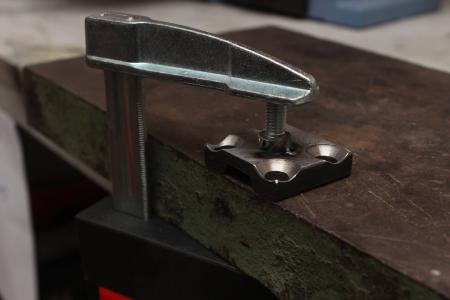 Auf das Edelstahlrohr wird etwas später eine Stahlplatte geschweißt. Diese Platte bekommt vier Löcher, in die je ein M8 Gewinde geschnitten sein wird. Dadurch ist es, wie schon bei dem Montieren der Hinterräder, möglich die Spannplatten vom Hoverboard zu nehmen, um die Welle festzuspannen.
