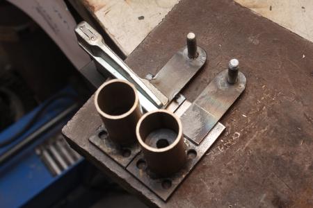 Dazu kaufte ich eine Stahlstange mit 10mm Durchmesser, die ich an einem Ende ähnlich wie die originale Lenkstange zu einem Haken gebogen hab. Ohne genau zu wissen welche Länge passend ist hab ich sie großzügig 15cm länger gemacht, was sich als guter Abstand herausgestellt hat.