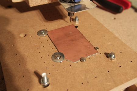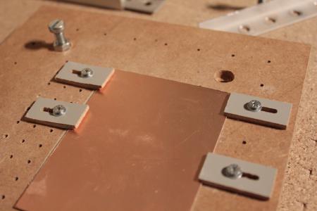 Später hab ich noch eine Platineneinspannvorrichtung gebaut (Detailliertere Baubeschreibung unter CNC Fräsen).