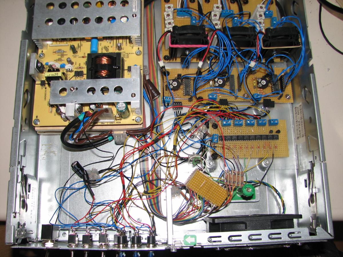 Dazu hab ich in den Deckel einer Abzeigdose eine Steckdose eingebaut. Zwischen Steckdose und einem mit der Dose verbundenen Stecker hab ich eine Relais gesetzt, die dann ein angeschlossenes Gerät schaltet.