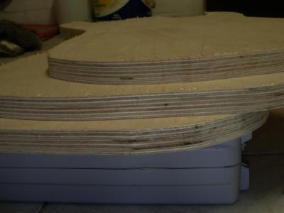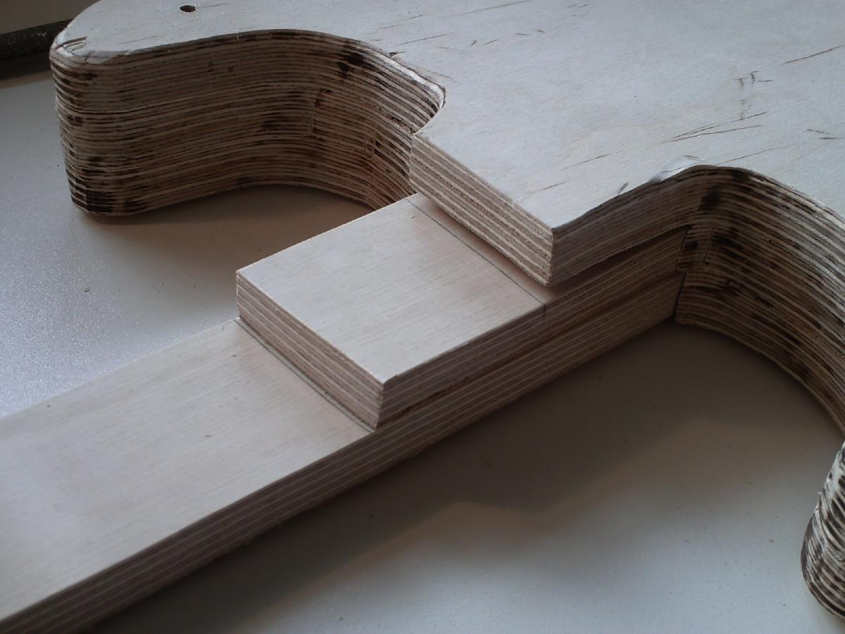 Als Holz für Korpus und Hals verwende ich aus Kostengründen ca. 2cm dickes Multiplex.
