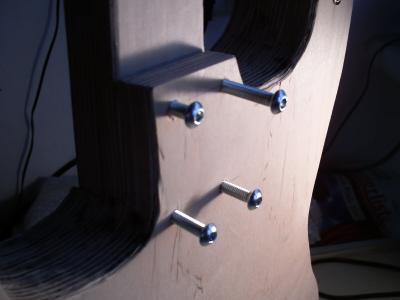 Das linke Holzstück wird am unteren ende des Halses festgeschraubt, um mehr Stabilität zu bekommen