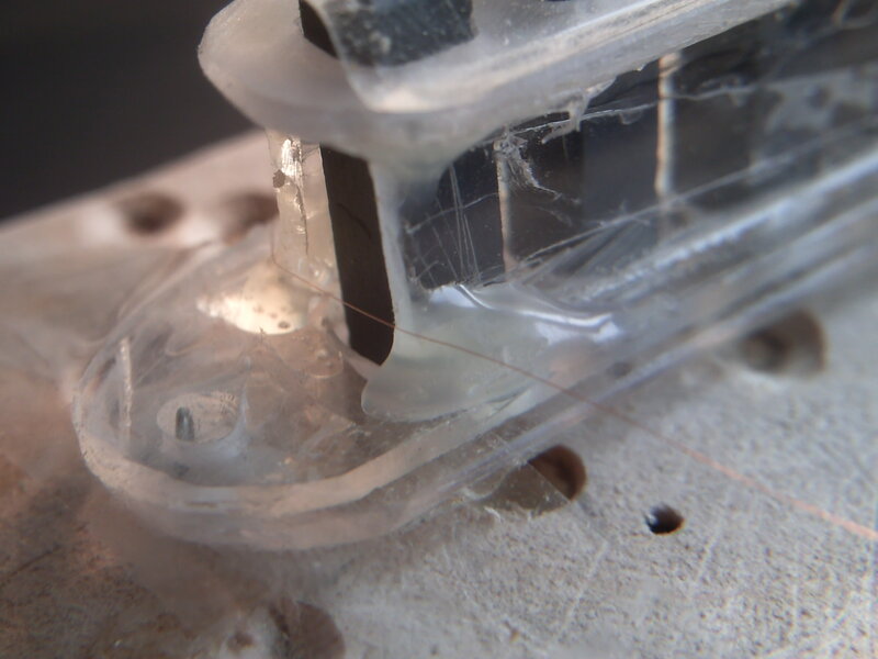 Mit etwas draht zusammengehalten hab ich die einzelnen Plexistücke mit Plexiglaskleber zusammengeklebt