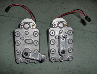 So, mal die zwei DC-Getriebemotoren von Pollin. Für jedes Fenster einer