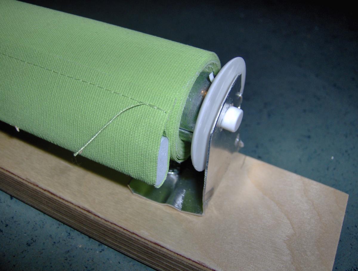 Das Alurohr mit etwas Schaumstoff als Füllmaterial in das Metallrohr vom Rollo gefriemelt