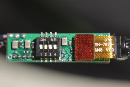 Das andere Ende kann mit einem der Kontakte des DIP-Schalters auf selbiger Seite verbunden werden (diese sollten alle auf GND liegen).