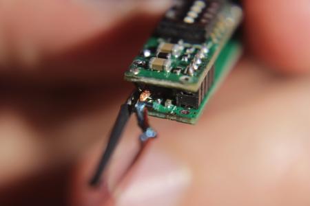 Vorsichtig dran löten und das wars auch schon. Der Heißklebetropfen ist dringend notwendig, da das Lot nicht so ganz feste hällt.