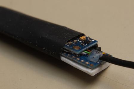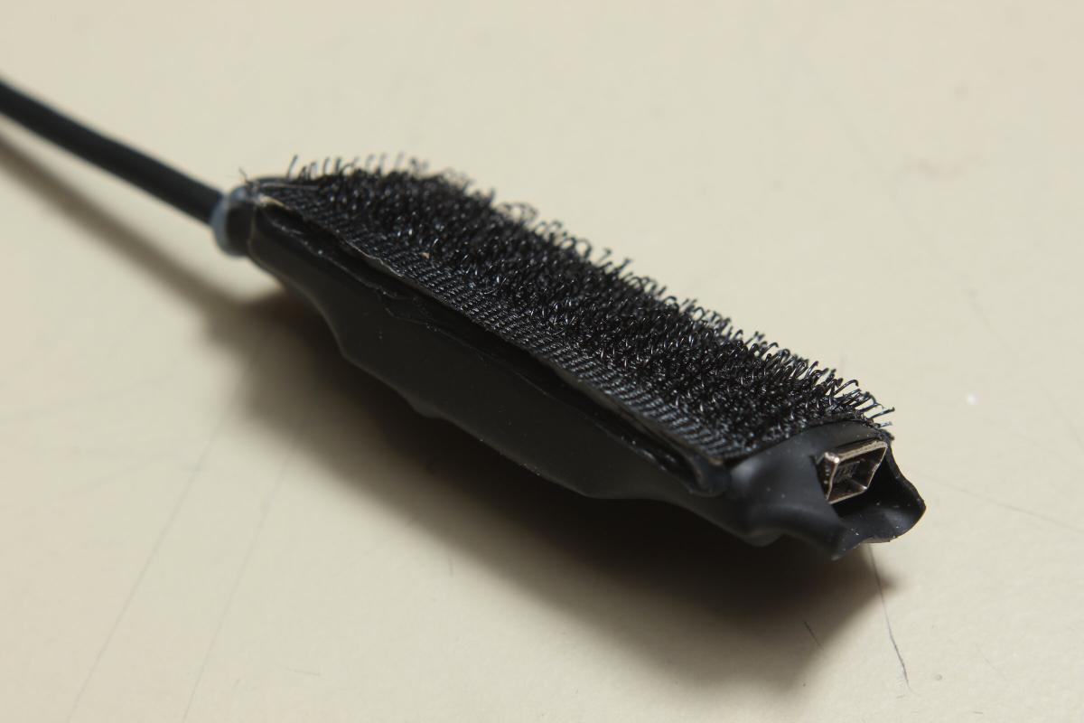 Zuletzt bekommt noch der Headtracker selbst einen Schrumpfschlauch übergezogen und etwas Klettband an die Unterseite.