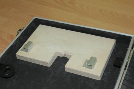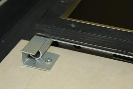 Da der Kofferdeckel dem Gewicht des Monitors nicht lange standhalten würde musste dieser mit zwei einklappbaren Winkeln aus Alu verstärkt werden.