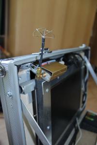Der FPV-Empfänger wird an einem Alurohr befestigt, welches senkrecht in eine Vorrichtung im Koffer gesteckt werden kann.