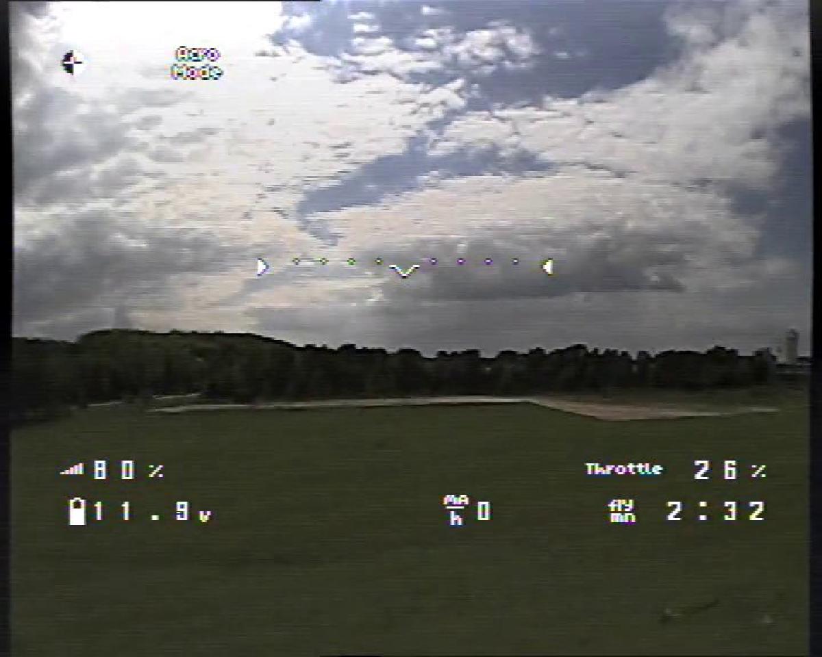 Nachdem Spannung und RSSI, sowie der Horizont (über die Daten des MultiWii) funtionierte wurde es Zeit für ein paar Testflüge.