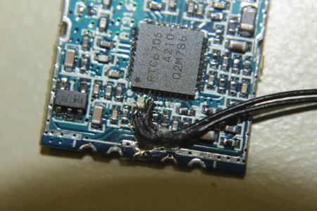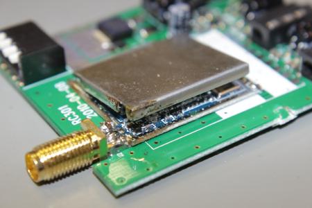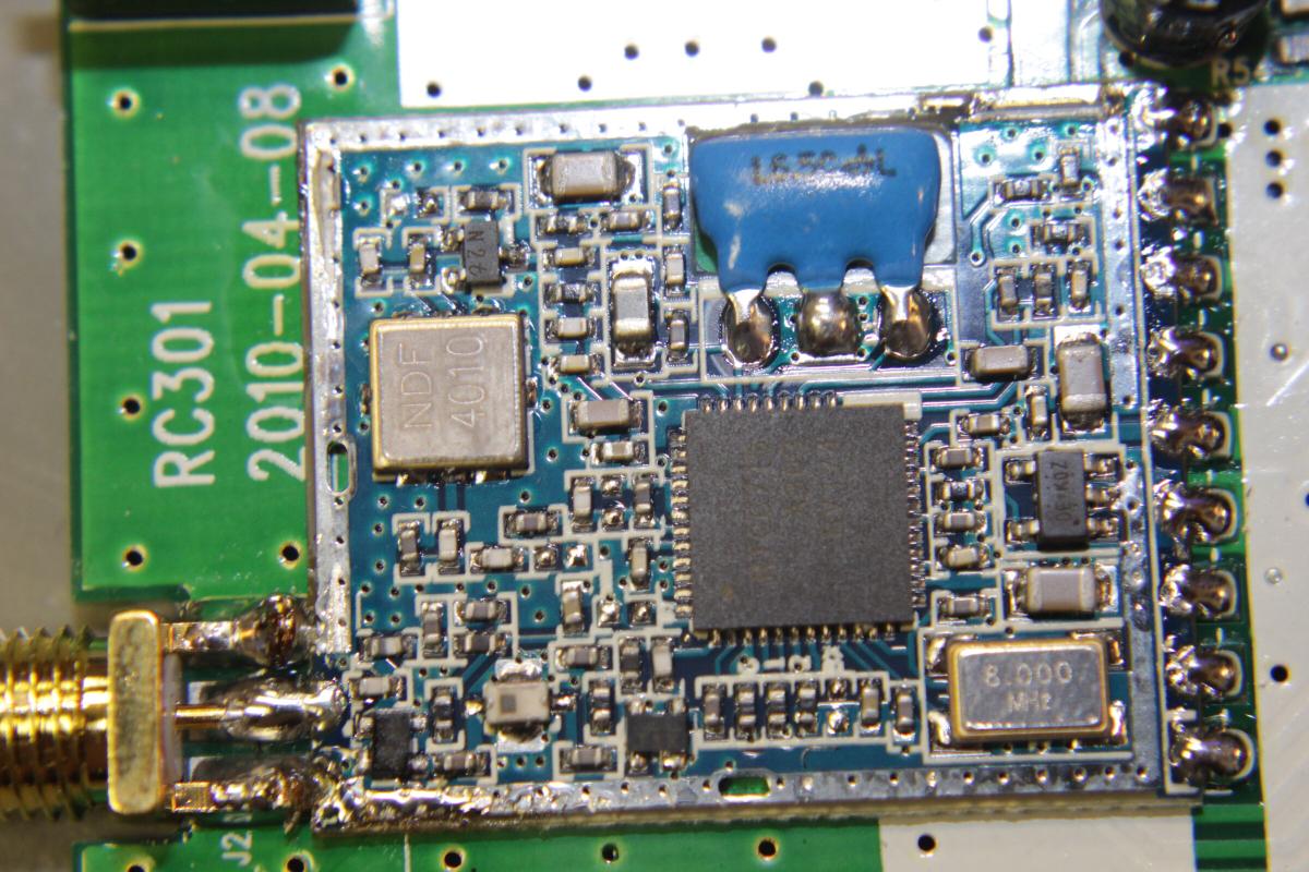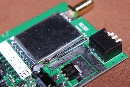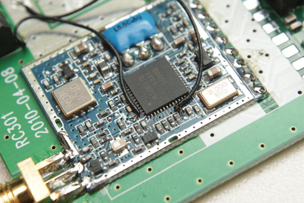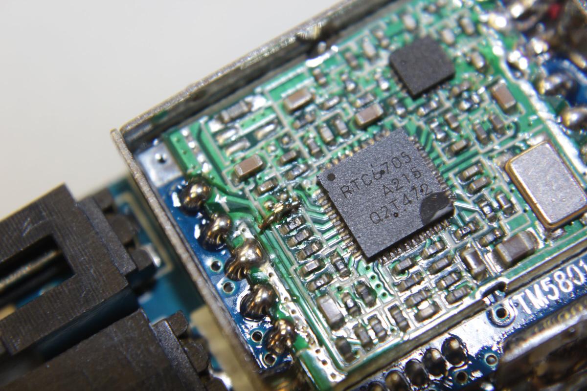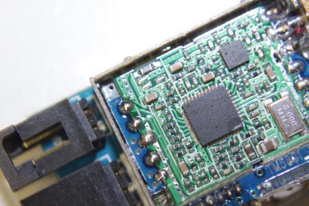 Der eigendliche Receiver befindet sich auf der kleinen blauen Platine in der Mitte. Um an den eigendlichen Chip zu kommen, muss die Schirmung abgelötet werden. Mit etwas Ablötlitze ist das aber gut machbar.
