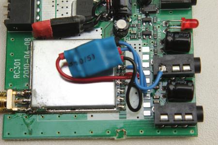 Da ich es nervig fand ein extra Anschluss am Gehäse anzubringen hab ich das RSSI Signal auf eine der 4 Poligen AV-Out Buchsen gelegt. Der RC305 kann eh nur Mono wesshalb der 4. Pin des AV-Out (also die Spitze des Steckers) überflüssig ist. Nachdem der kleine Kondensator (C9, Im Bild blau markiert) neben der 3.5mm Buchse abgelötet ist kann der Ausgang des RSSI-Puffers an die Buchse gelötet werden.