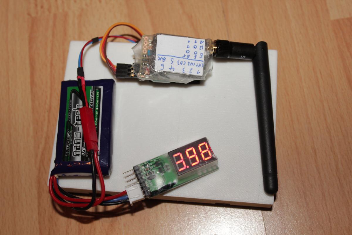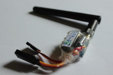 Die 5V Spannung bekommt der Sender direkt von einem BEC, indem er z.B. einfach direkt an den Empfänger (für die Steuerung) gesteckt wird. Da ich hier auf einen Spannungsregler verzichtet habe sollte man aufpassen, dass dort nicht viel mehr als 5V reingehn.