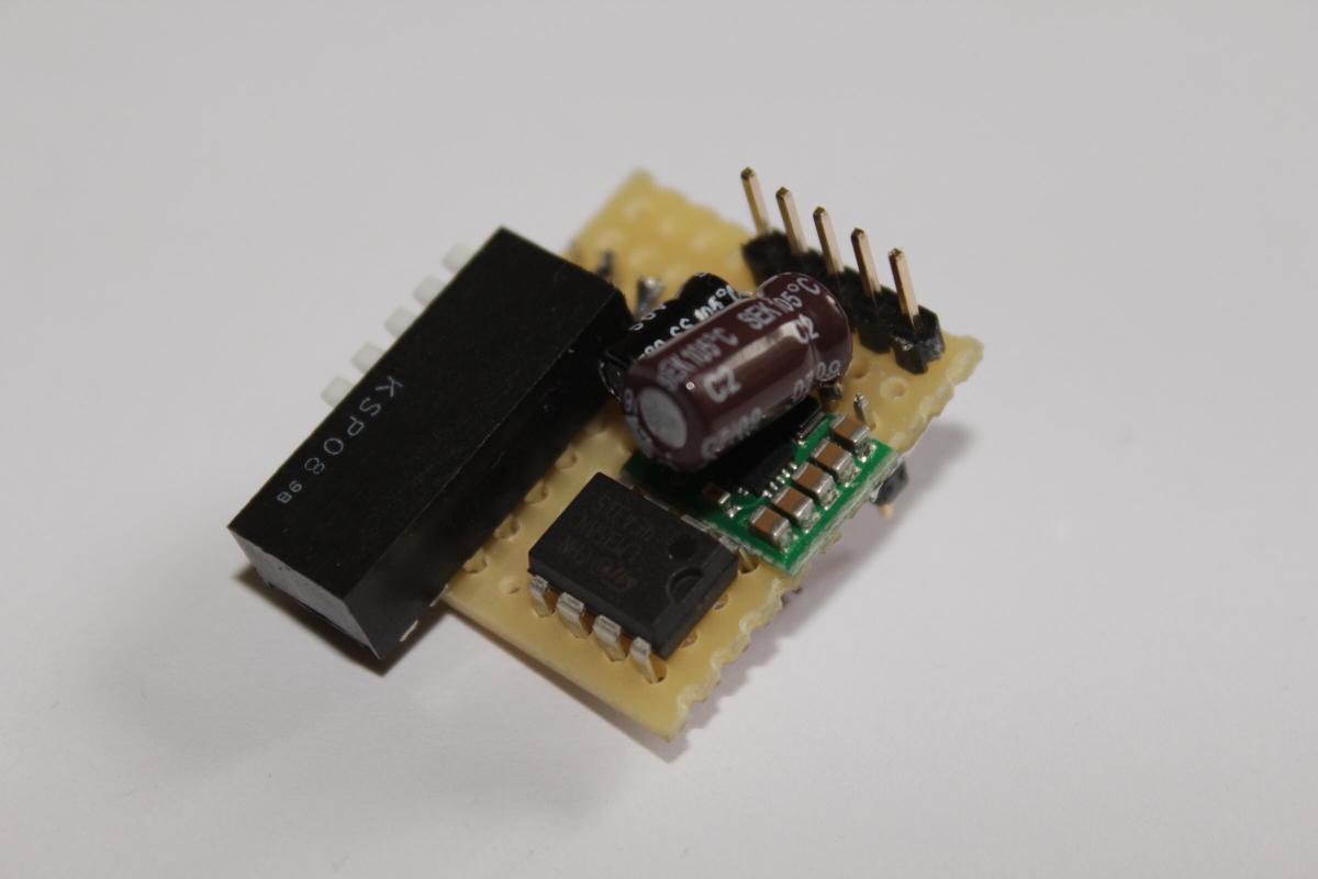 Glücklicherweise existiert dafür bereits ein Lötanschluss am Modul. Da der Ausgang nicht direkt belastet werden darf benötigt man einen Impedanzwandler. Am einfachsten geht das mit dem LM358 Operationsverstärker.