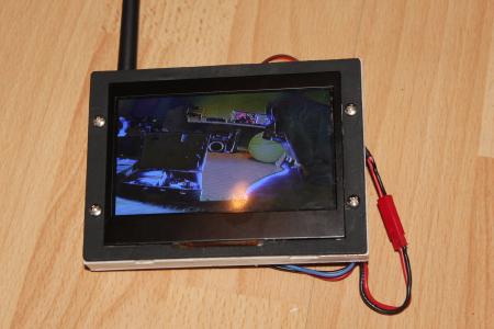 Mit etwas Klett auf der Rück- (oder ist es die Vorderseite) kann der minireceiver an den kleinen 7" Monitor geklettet werden. Mit einem 2S Lipo dazu hat man nun einen portablen Monitor mit 5.8Ghz Empfäger im A,B und E-Band.