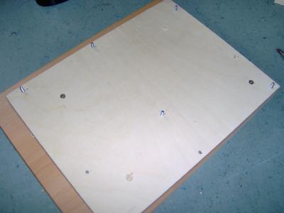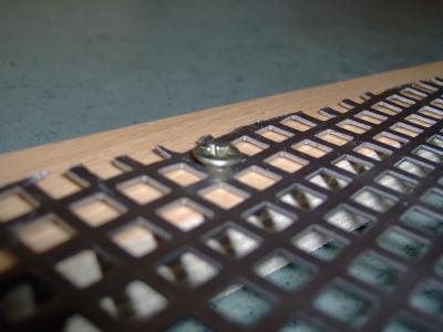 Ich habe es mit Senkkopfschrauben am Holz befestigt: