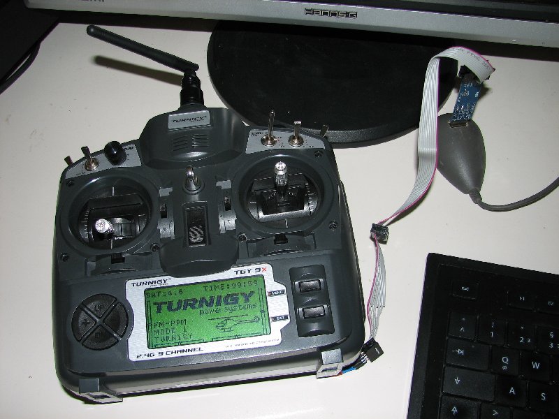 Nachdem ich mir die Turnigy 9x (Auch bekannt als TH9x, Imax 9x, ...) bei Ebay für ca. 110€ ersteigert hatte wollte ich die Originalfirmware, welche eingeschränkte Einstellmöglichkeiten besitzt und mich vorallem mit ihrem nervigen Piepton bei jedem Tastendruck in den Wahnsinn treibt durch eine alternative Firmware ersetzen.