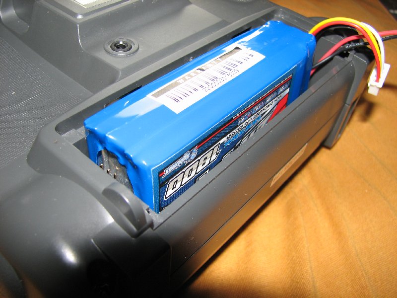 In diesem Sinne kaufte ich mir einen LiFePo4 1800mAh Akku beim Hobbyking. Leider war dieser dann doch ein paar mm zu groß und der Batteriefachdeckel passte nicht mehr.