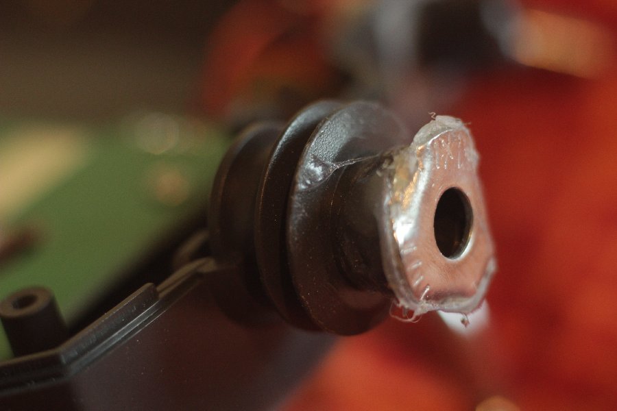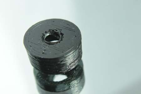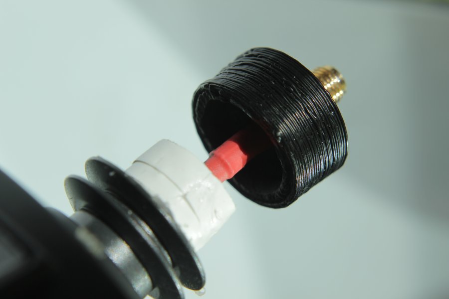 Edit 20.4.2013: Da die angeklebte Unterlegscheibe nicht so gut gehalten hat und auch bescheiden aussah hab ich einen kleinen Aufsatz ge-3D-druckt.