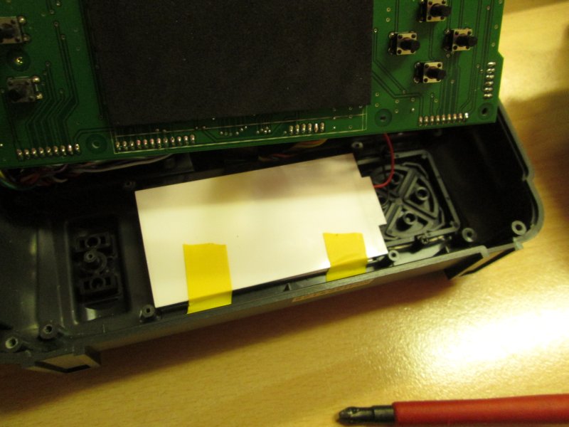 Dieser musste nicht einmal angeklebt werden, da er sich mit etwas Isolierband dazwischen gut festklemmen lässt.