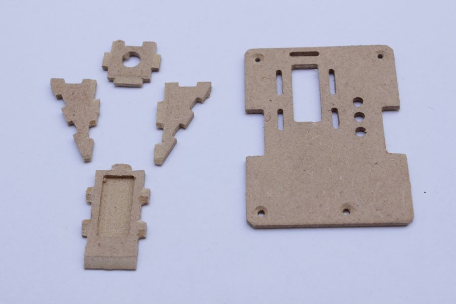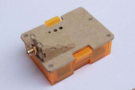 Gefräst hab ich die Teile aus etwa 2mm dicker Hartfaserplatte. Erstes lockeres zusammenstecken und nachpfeilen zeigt: es Passt ... nicht. Das Antennenkabel stösst im inneren gegen den "Deckel", sodass dieser nicht ganz draufpasst. Nachdem ich eine 1mm tiefe Tasche von innen in den Deckel nachgefrässt hatte passte es nun.