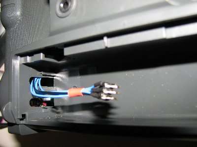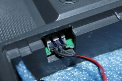 Den Stecker hab ich durch ein vorhandenes Loch an der linken Seite im Batteriefach gesteckt, da ich nicht unnötig am Gehäuse rumsägen wollte.