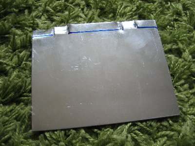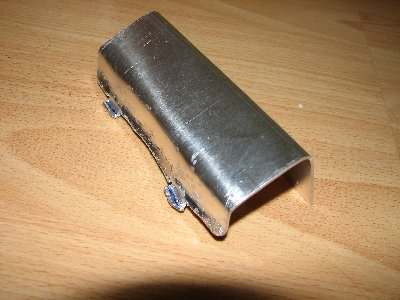 Dazu hab ich ein Stück Alublech zurechtgeschnitten und ähnlich dem Plastikdeckel vorne zwei Haken gebogen.